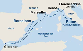 | 출발지 | 바르셀로나, 스페인 | 도착지 | 로마(치비타베키아), 이탈리아 |