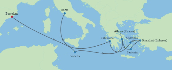 | 출발지 | 바르셀로나, 스페인 | 도착지 | 로마(치비타베키아), 이탈리아 |