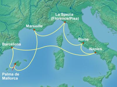 | 출발지 | 로마(치비타베키아), 이탈리아 | 도착지 | 로마(치비타베키아), 이탈리아 |