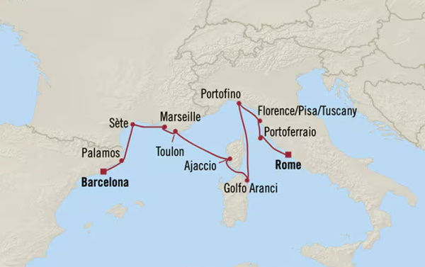 | 출발지 | 바르셀로나, 스페인 | 도착지 | 로마(치비타베키아), 이탈리아 |