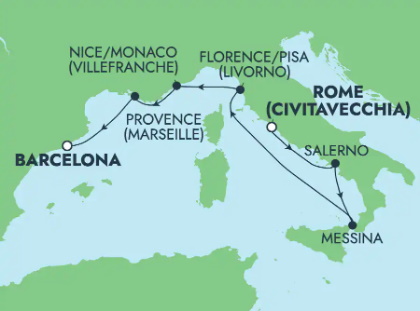 | 출발지 | 로마(치비타베키아), 이탈리아 | 도착지 | 바르셀로나, 스페인 |