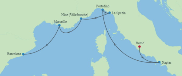 | 출발지 | 로마(치비타베키아), 이탈리아 | 도착지 | 바르셀로나, 스페인 |