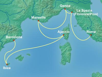 | 출발지 | 바르셀로나, 스페인 | 도착지 | 로마(치비타베키아), 이탈리아 |