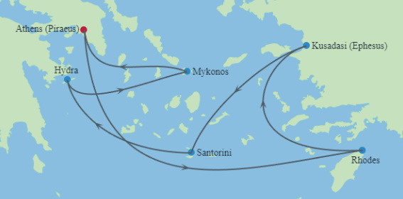 | 출발지 | 아테네(피레우스), 그리스 | 도착지 | 아테네(피레우스), 그리스 |