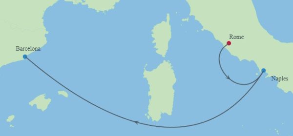 | 출발지 | 로마(치비타베키아), 이탈리아 | 도착지 | 바르셀로나, 스페인 |