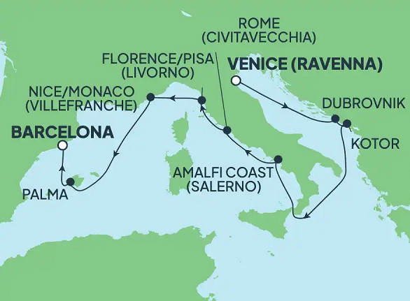 | 출발지 | 라벤나, 이탈리아 | 도착지 | 바르셀로나, 스페인 |