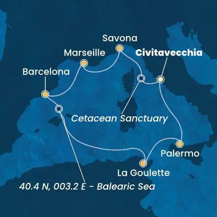 | 출발지 | 로마(치비타베키아), 이탈리아 | 도착지 | 로마(치비타베키아), 이탈리아 |
