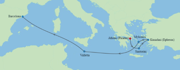 | 출발지 | 아테네(피레우스), 그리스 | 도착지 | 바르셀로나, 스페인 |
