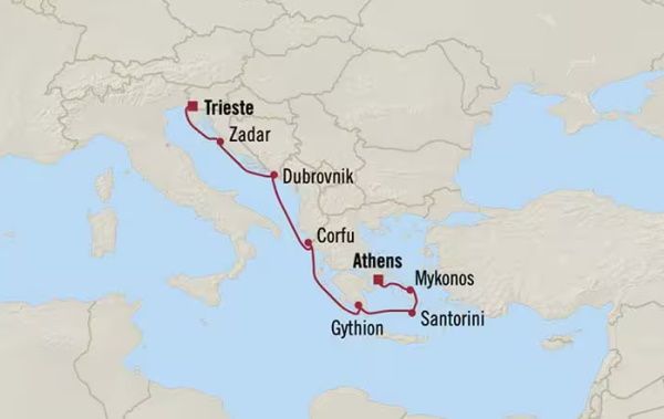 | 출발지 | 트리에스테, 이탈리아 | 도착지 | 아테네(피레우스), 그리스 |