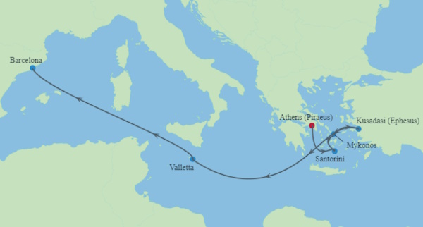 | 출발지 | 아테네(피레우스), 그리스 | 도착지 | 바르셀로나, 스페인 |