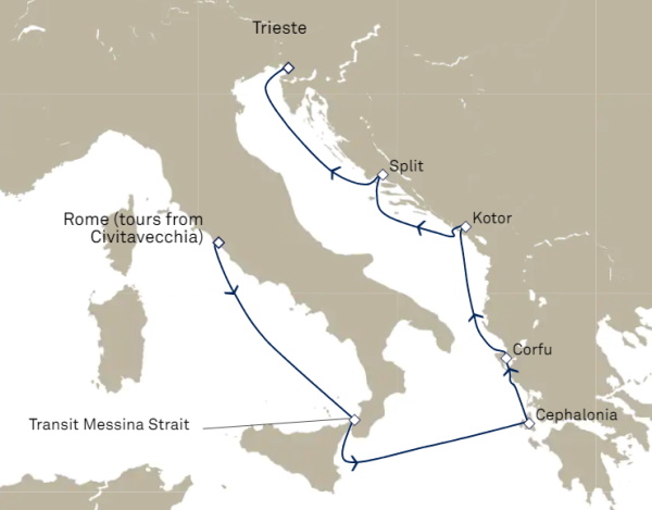 | 출발지 | 로마(치비타베키아), 이탈리아 | 도착지 | 트리에스테, 이탈리아 |